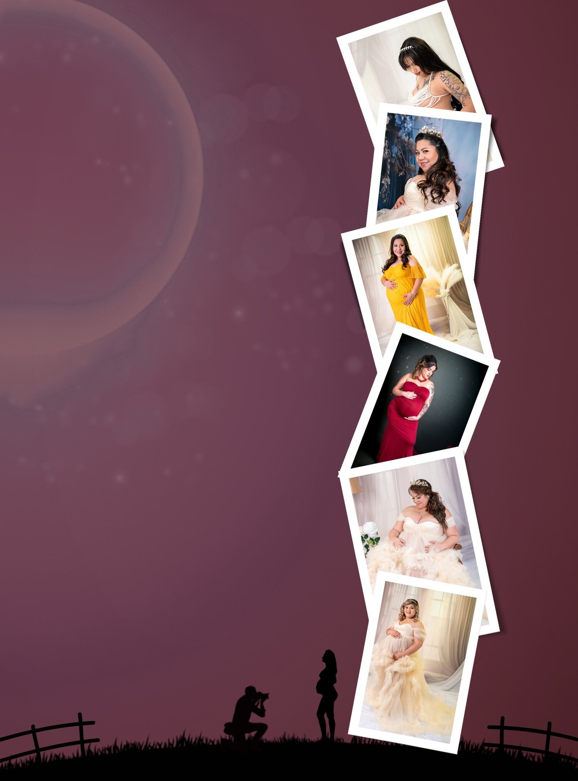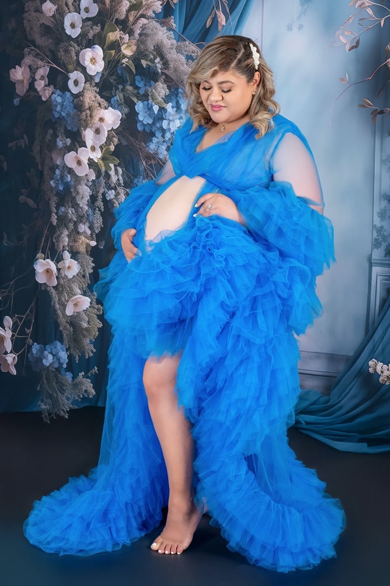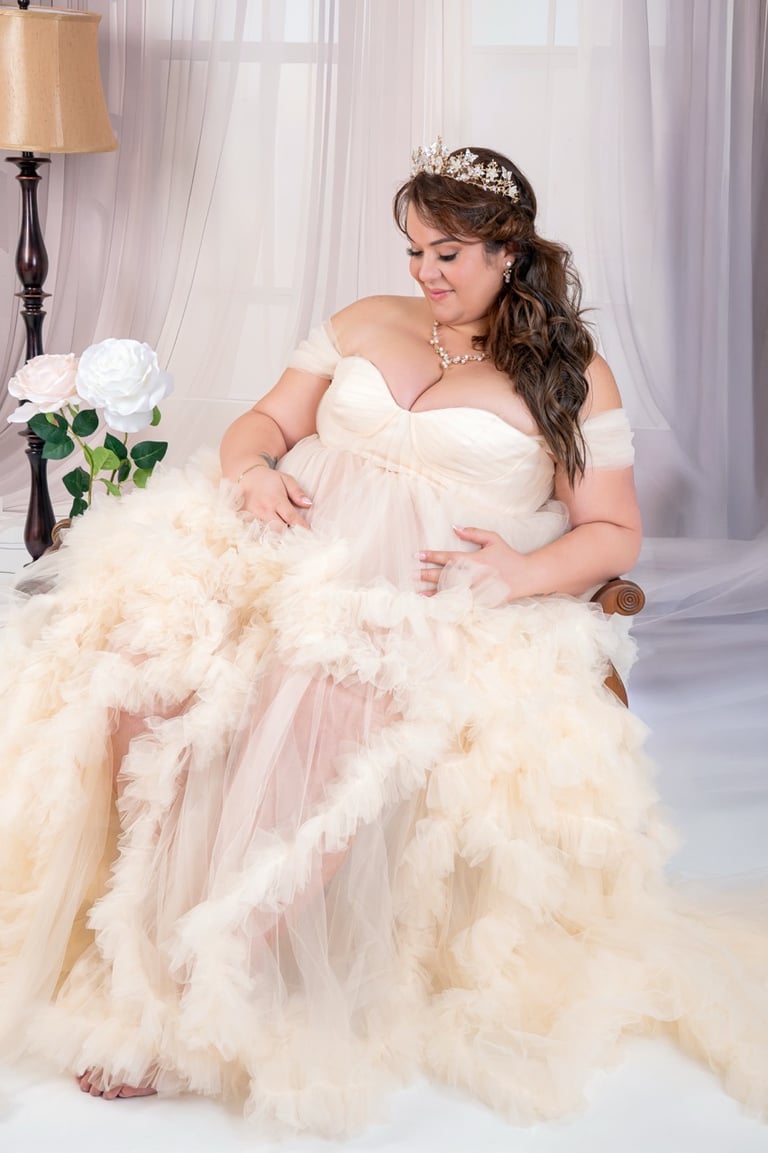 Vestuario y Accesorios: Contamos con una selección de vestidos de maternidad disponibles sin costo adicional, o si lo prefieres, puedes traer tu propio vestuario para personalizar aún más tu sesión.