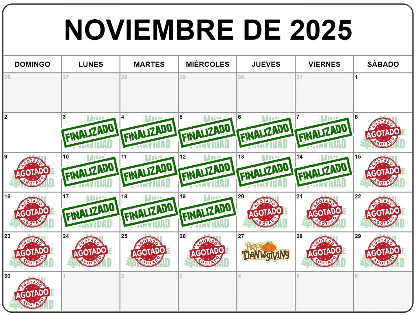 🎄 Del 3 de noviembre al 7 de diciembre de 2025.