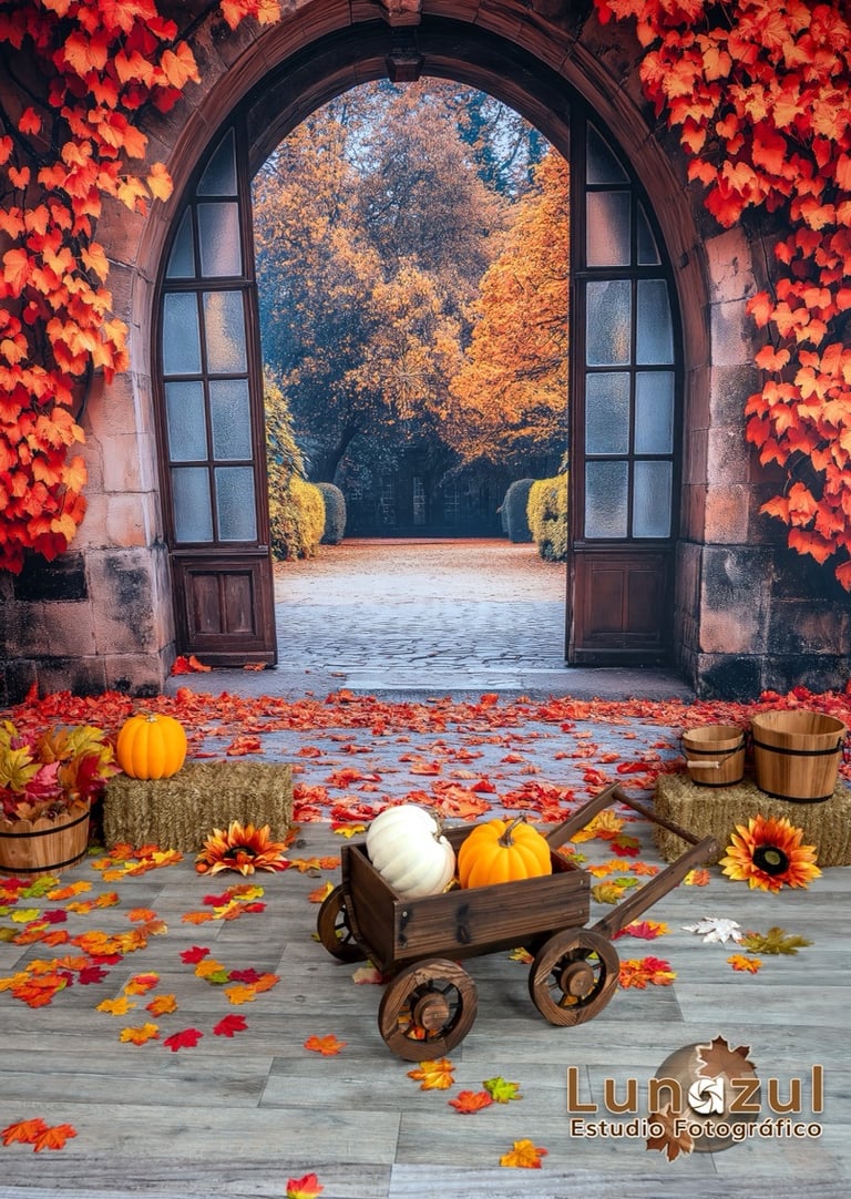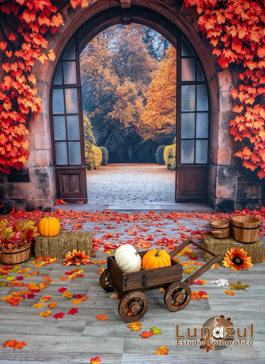 🍁 Temática otoñal con calabazas, hojas secas, y tonos cálidos. Tenemos tres fondos disponibles para seleccionar el que guste usar.