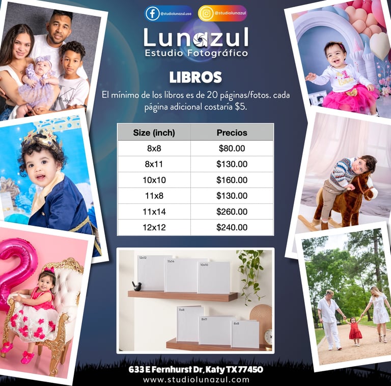 En Estudio LunAzul, no solo capturamos momentos especiales, sino que también te ofrecemos la opción de llevar esos recuerdos a casa en forma de impresiones de alta calidad.